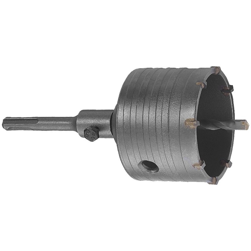 Carota cu antrenor SDS + si burghiu pentru centrare Dotata cu 6 pastile din carbura de tungsten Diametru carota SDS Plus: 100 mm