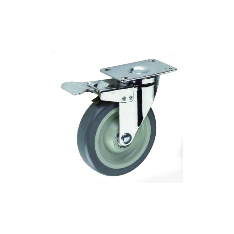 Roata furca pivotanta, frana, tpr gri - 100 X 31 MM